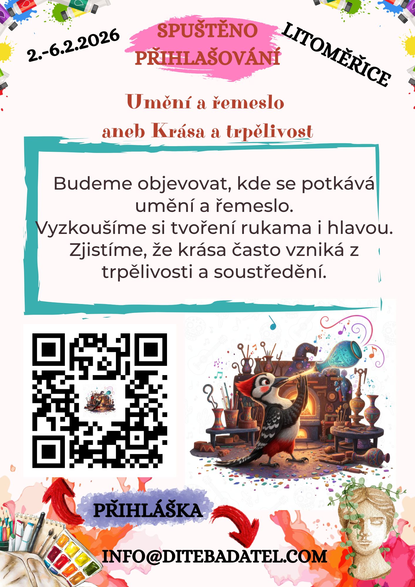 Během týdne se zaměříme na propojení umění a řemesla a na to, jak vzniká krása z pečlivé, soustředěné práce. Děti budou tvořit rukama i hlavou, zkoušet různé přístupy a objevovat radost z procesu i hotového díla.