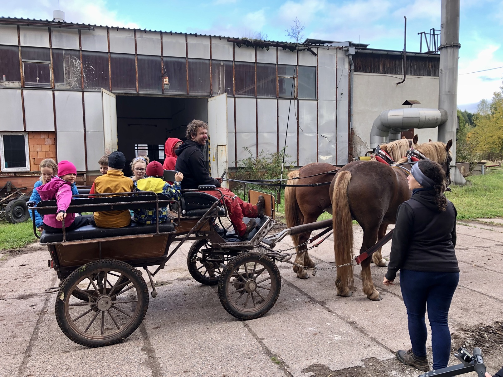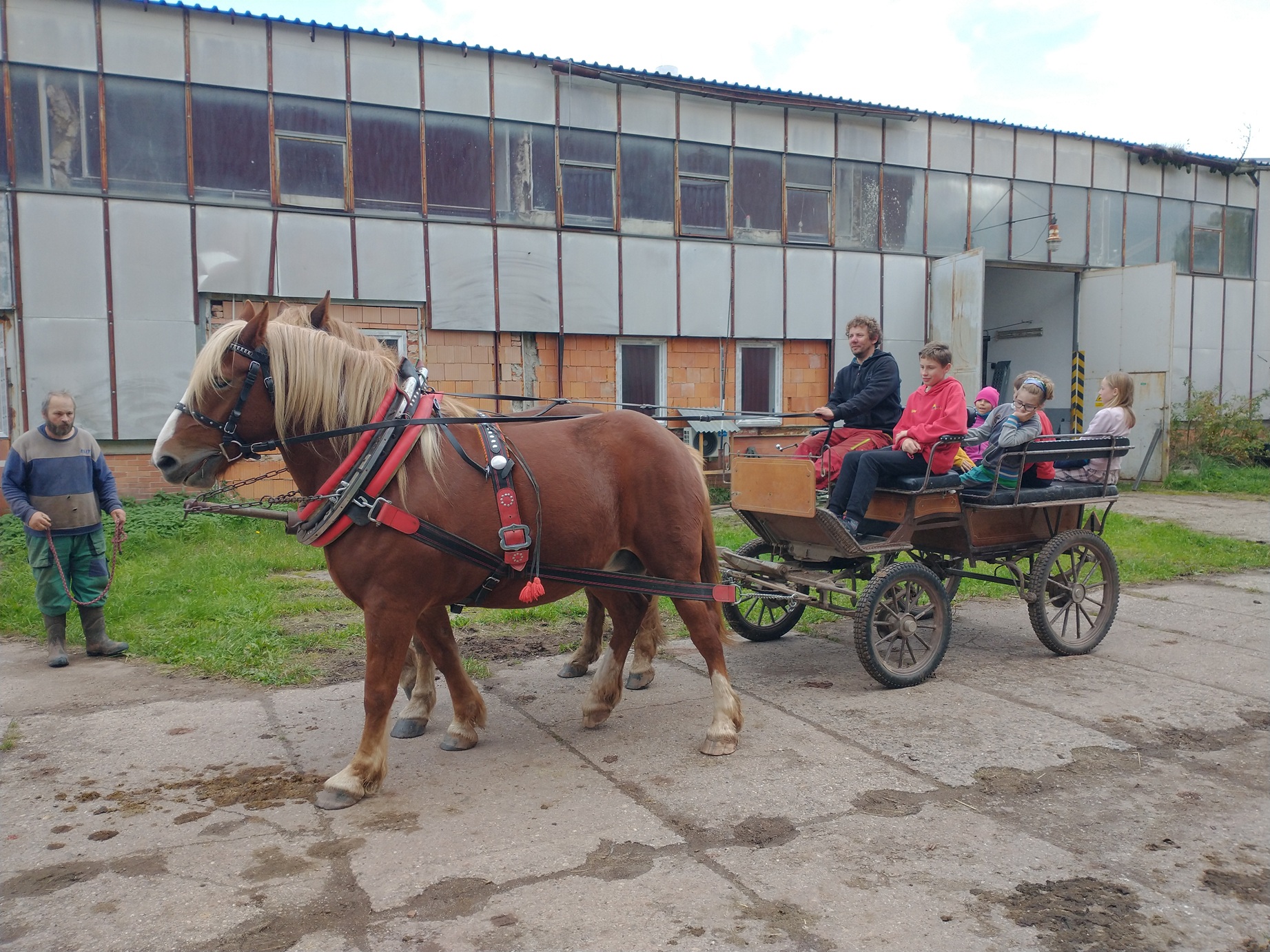 opět vydrželi v klidu. Čekala nás totiž ještě jedna projížďka, tentokrát na voze. Dvě kobyly