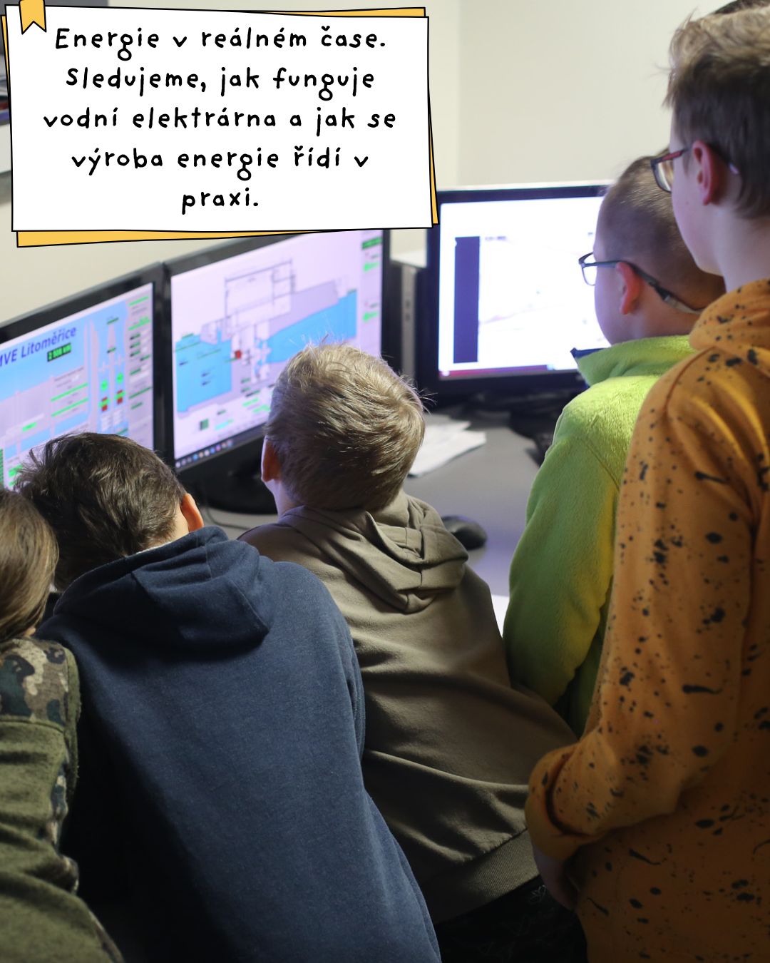 V úterý jsme se vydali příjemnou procházkou na exkurzi do vodní elektrárny MVE Litoměřice, kde jsme se kromě spousty jiných zajímavostí o tom, jak funguje vodní elektrárna, několik metrů pod hladinou Labe dozvěděli princip Kaplanovy turbíny. Překvapilo nás, že v celé elektrárně pracují jen dva zaměstnanci. Provoz řídí počítače a více lidí tak není potřeba. Odpoledne jsme odhalovali, že některé věci nebo činnosti nás dobíjejí všechny – jako třeba spánek, jídlo nebo odpočinek – a že jiné zdroje máme každý své vlastní. Mohou to být i kamarádi, zvířata, hudba, rodina… Zkoumali jsme také, že to, co nás baví, nás někdy nabíjí a jindy zase unavuje. Třeba fyzický pohyb tělo unavuje, a přesto je nám po něm dobře a cítíme se svým způsobem nabití.