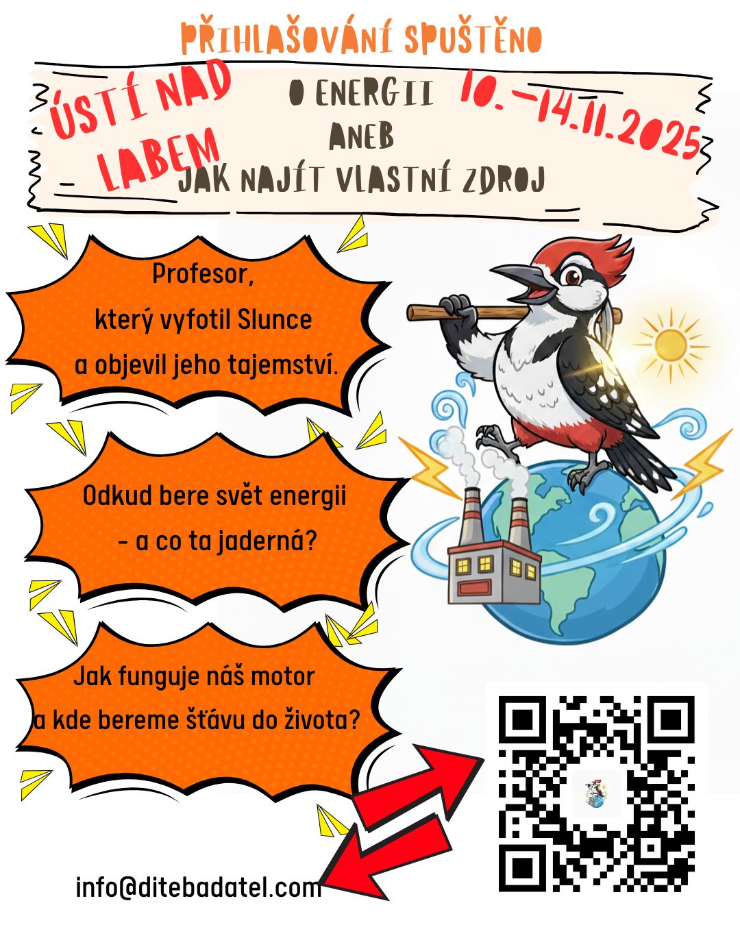 V listopadu se znovu potkáme v Ústí nad Labem na dalším badatelském týdnu! Tentokrát se zaměříme na téma energie – v přírodě, kolem nás i v nás samotných.