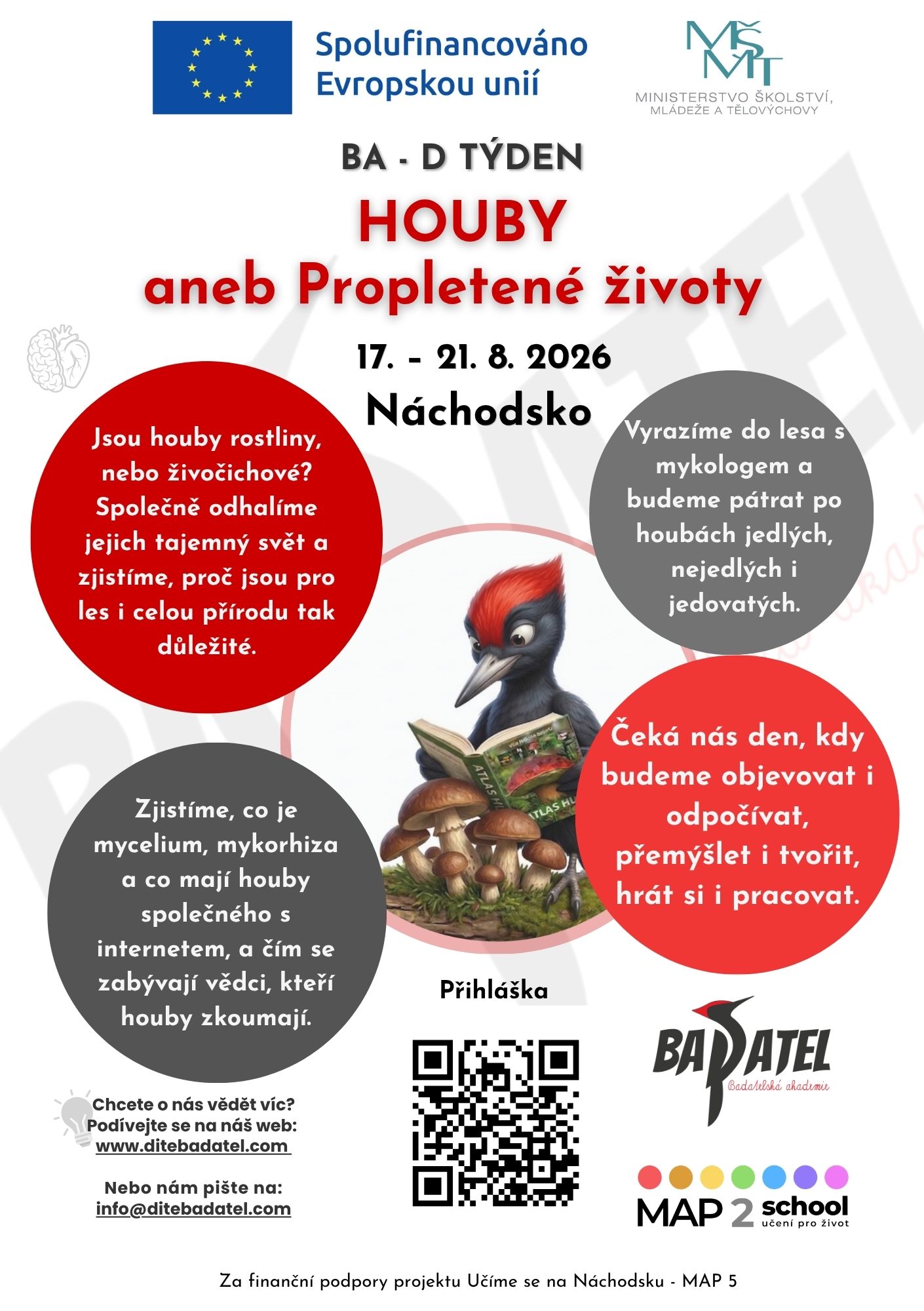 Je určen pro žáky 1. stupně ZŠ. Jedná se o klasický BA-Datelský týdenní program s jedním přespáním ze čtvrtka na pátek. Celý týden proběhne v prostoru komunitní školy MYCELINKA v Pěkově (Police nad Metují).